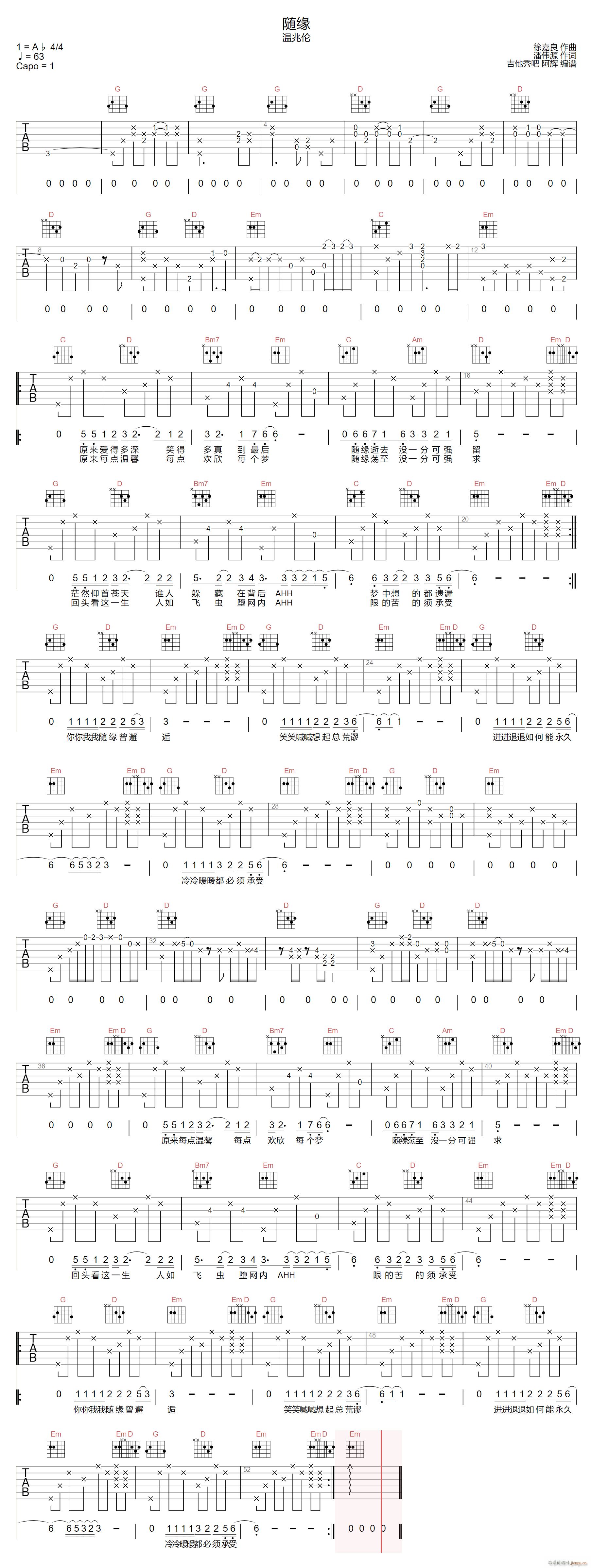 公众号:绵羊乐谱 随缘 ( G调指法原版编配) 免费弹唱吉他谱_六线谱/词曲:温兆伦 点击: (阿辉) 公众号:绵羊乐谱 | 官方QQ群:978773290 不吃独食,学会分享!本文链接:http://www.shaomingyang.com/btb/35612.html 转载请标明出处,尊重原创(๑╹◡╹)ノ。如信息有误或版权疑问,请通过网站底部联系我们会第一时间处理,感谢理解支持(◕ᴗ◕✿)!