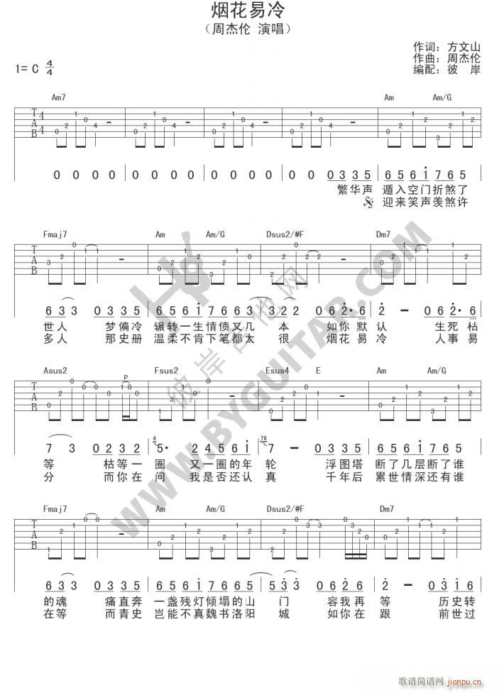 公众号:绵羊乐谱 烟花易冷(吉他弹唱)免费弹唱吉他谱_六线谱/词曲:周杰伦 点击: 1000 图片恐怕经历缩放,手机长按或点开后长按留存,电脑鼠标右键留存. (收集) 公众号:绵羊乐谱 | 官方QQ群:978773290 不吃独食,学会分享!本文链接:http://www.shaomingyang.com/btb/5303.html 转载请标明出处,尊重原创(๑╹◡╹)ノ。如信息有误或版权疑问,请通过网站底部联系我们会第一时间处理,感谢理解支持(◕ᴗ◕✿)!