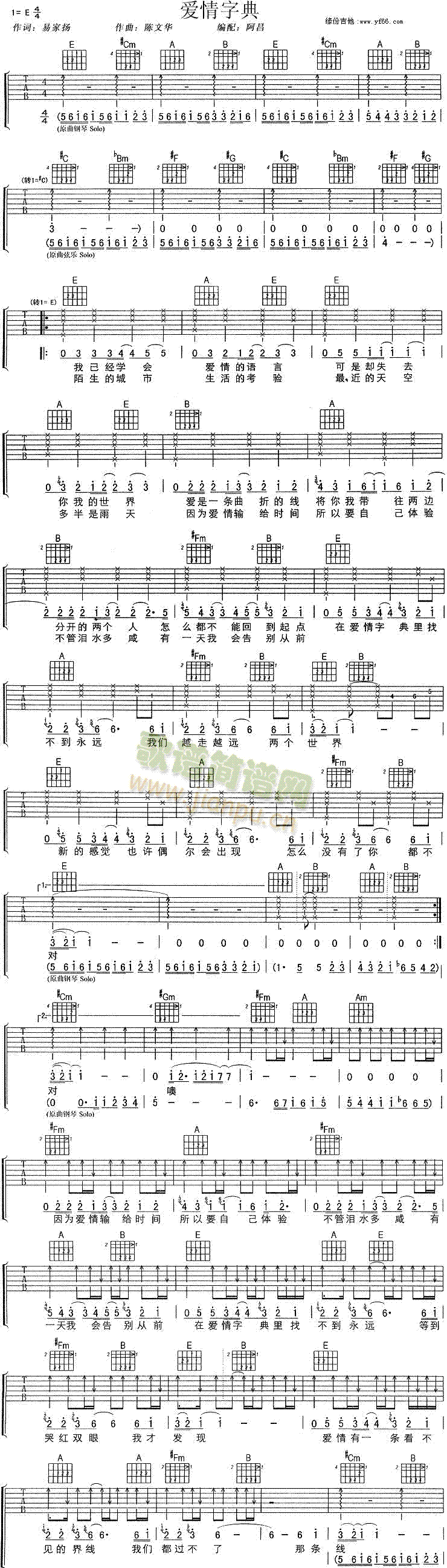 公众号:绵羊乐谱 恋爱字典免费弹唱吉他谱_六线谱:孙燕姿 点击: 1000 图片或者源委缩放,手机长按或点开后长按保全,电脑鼠标右键保全. (搜集) 公众号:绵羊乐谱 | 官方QQ群:978773290 不吃独食,学会分享!本文链接:http://www.shaomingyang.com/btb/5315.html 转载请标明出处,尊重原创(๑╹◡╹)ノ。如信息有误或版权疑问,请通过网站底部联系我们会第一时间处理,感谢理解支持(◕ᴗ◕✿)!