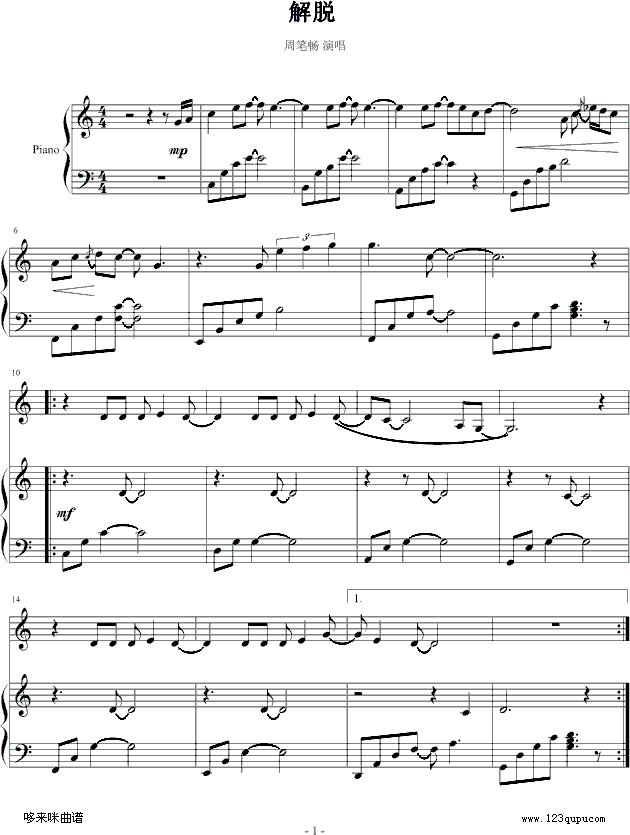 解脱-周笔畅免费钢琴谱_五线谱:未知 点击: 1000 图片可能经过缩放,手机长按或点开后长按保存,电脑鼠标右键保存.