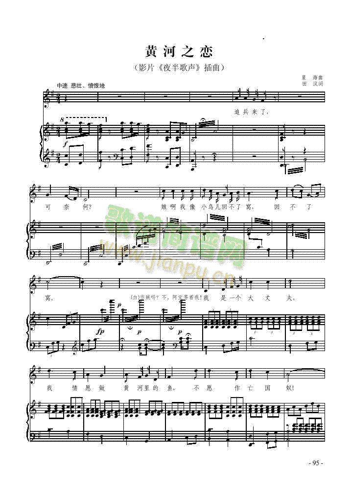 黄河之恋 歌曲类 钢琴伴奏谱免费钢琴谱_五线谱:民歌 点击: 1000 图片可能经过缩放,手机长按或点开后长按保存,电脑鼠标右键保存.