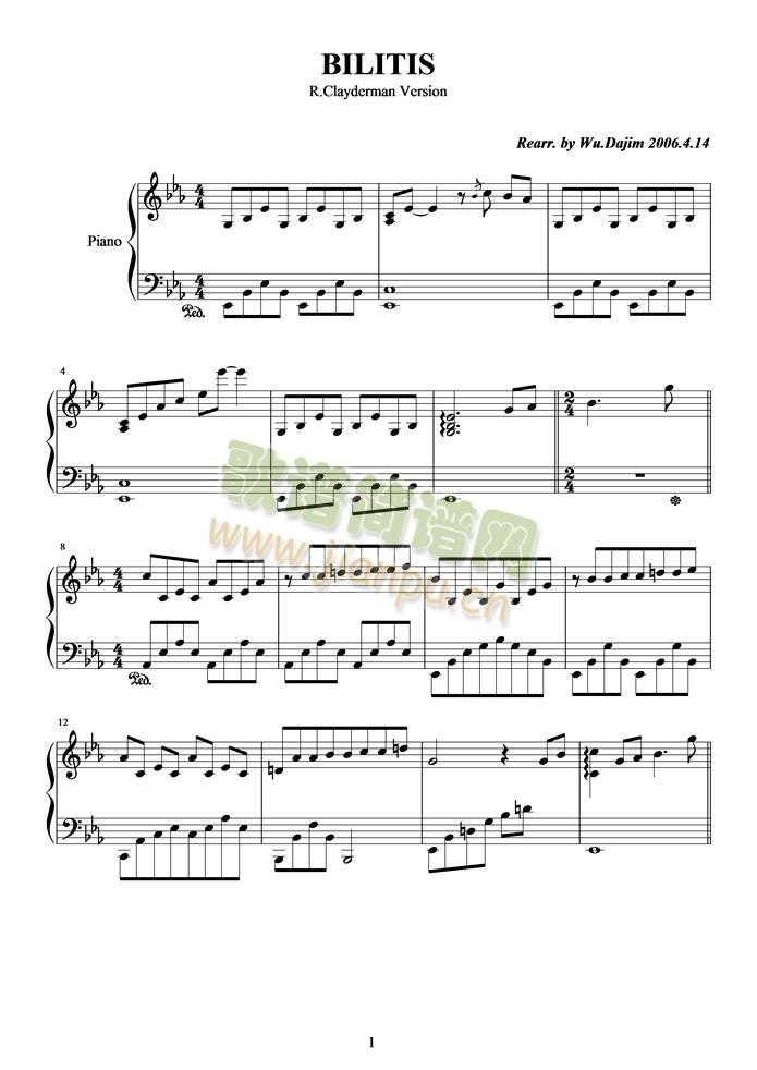 Bilitis免费钢琴谱_五线谱: 点击: 1000 图片可能经过缩放,手机长按或点开后长按保存,电脑鼠标右键保存.