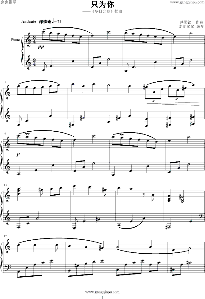 只为你-麦比多多版免费钢琴谱_五线谱:冬季恋歌 点击: 1000 图片可能经过缩放,手机长按或点开后长按保存,电脑鼠标右键保存.
