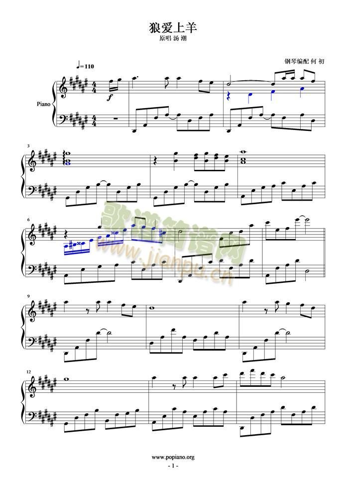 汤潮-狼爱上羊(演奏版)免费钢琴谱_五线谱: 点击: 1000 图片可能经过缩放,手机长按或点开后长按保存,电脑鼠标右键保存.