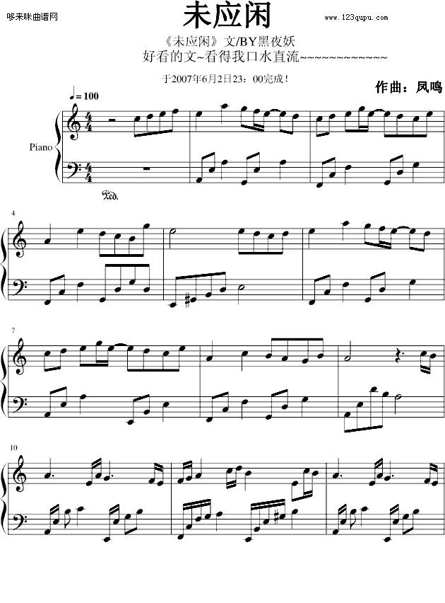 未应闲-凤鸣免费钢琴谱_五线谱:未知 点击: 1000 图片可能经过缩放,手机长按或点开后长按保存,电脑鼠标右键保存.