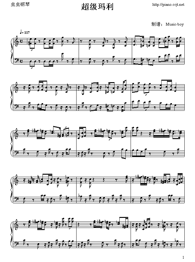 超级玛莉免费钢琴谱_五线谱:超级玛莉 点击: 1000 图片可能经过缩放,手机长按或点开后长按保存,电脑鼠标右键保存.