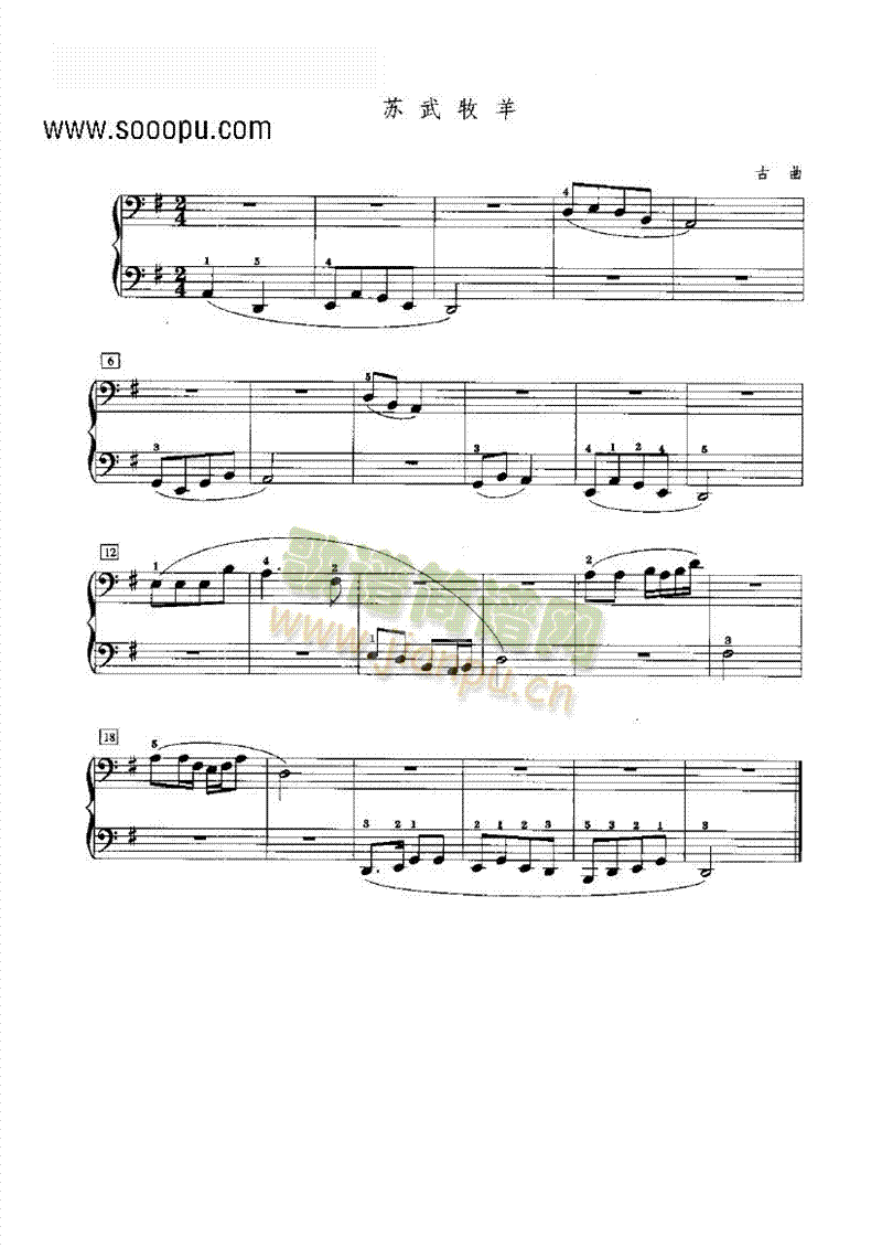 苏武牧羊 键盘类 钢琴免费钢琴谱_五线谱:儿童钢琴 点击: 1000 图片可能经过缩放,手机长按或点开后长按保存,电脑鼠标右键保存.