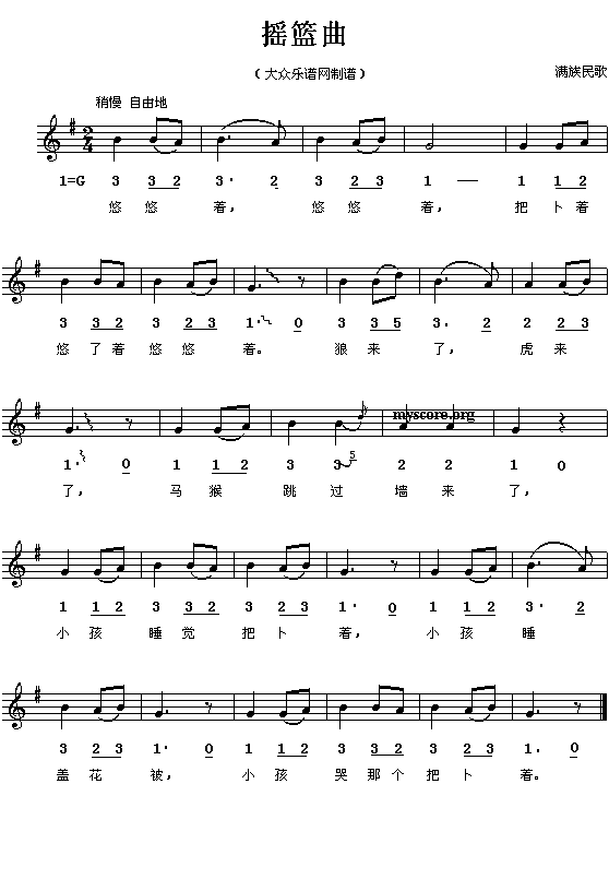 满族民歌:摇篮曲(简线对照)免费钢琴谱_五线谱:未知 点击: 1000 图片可能经过缩放,手机长按或点开后长按保存,电脑鼠标右键保存.