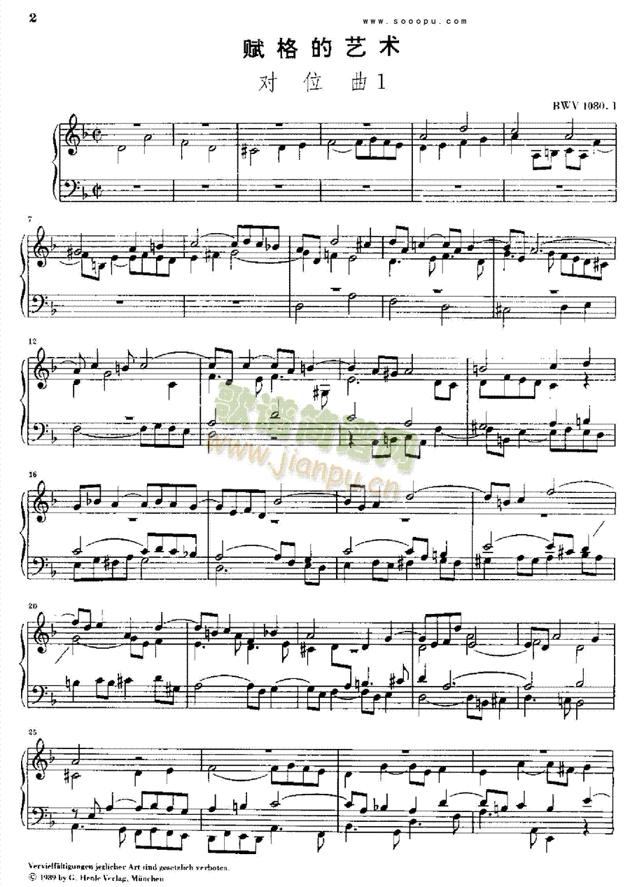 赋格的艺术(钢琴-适用于室内乐) 键盘类 钢琴免费钢琴谱_五线谱:巴赫 点击: 1000 图片可能经过缩放,手机长按或点开后长按保存,电脑鼠标右键保存.