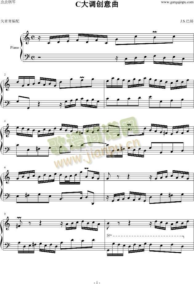 C大调创意曲免费钢琴谱_五线谱:巴赫 点击: 1000 图片可能经过缩放,手机长按或点开后长按保存,电脑鼠标右键保存.