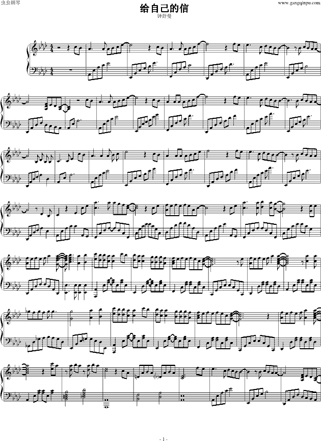 给自己的信-钢琴谱(钢琴曲)-钟舒曼免费钢琴谱_五线谱: 点击: 1000 图片可能经过缩放,手机长按或点开后长按保存,电脑鼠标右键保存.