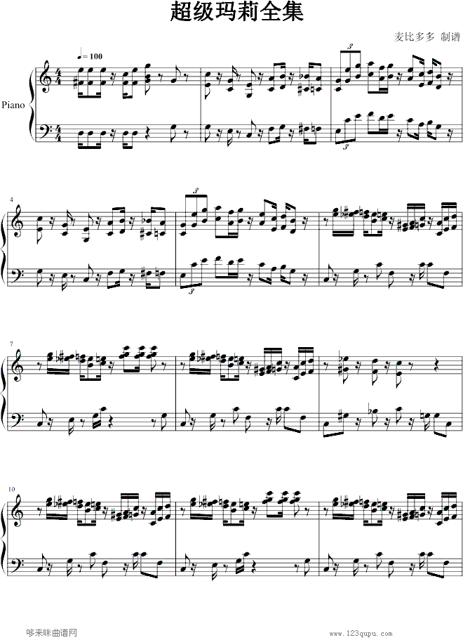 超级玛莉-全集-游戏免费钢琴谱_五线谱:未知 点击: 1000 图片可能经过缩放,手机长按或点开后长按保存,电脑鼠标右键保存.