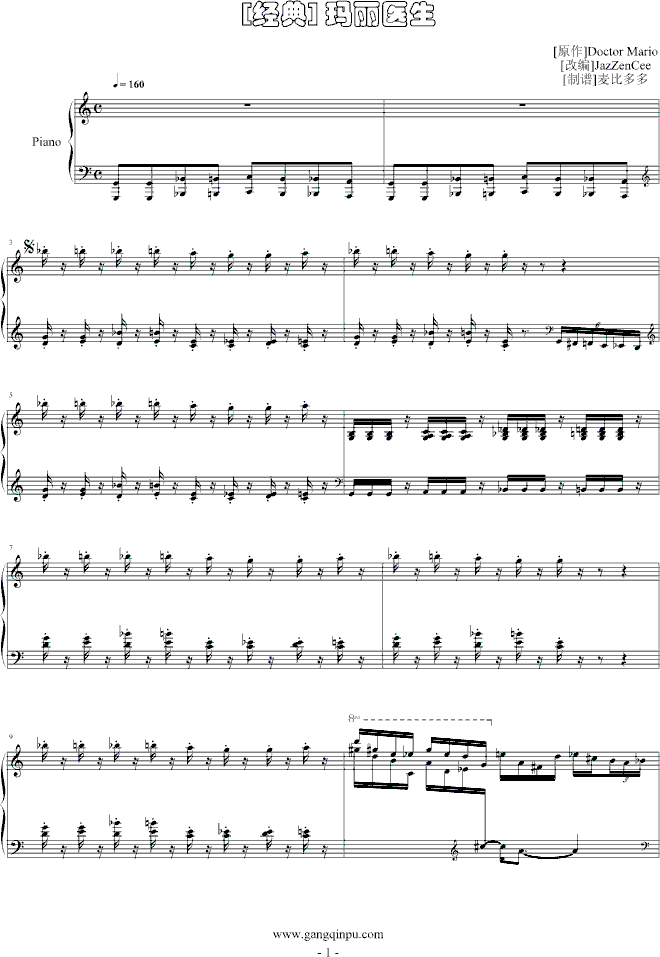 玛丽医生- [经典]免费钢琴谱_五线谱:游戏 点击: 1000 图片可能经过缩放,手机长按或点开后长按保存,电脑鼠标右键保存.