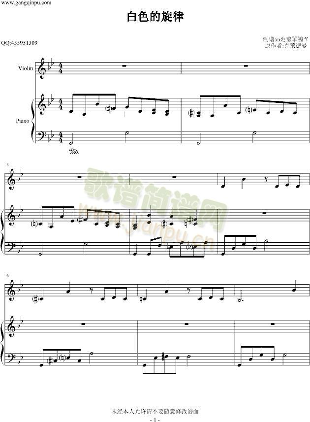 白色的旋律免费钢琴谱_五线谱:克莱德曼 点击: 1000 图片可能经过缩放,手机长按或点开后长按保存,电脑鼠标右键保存.