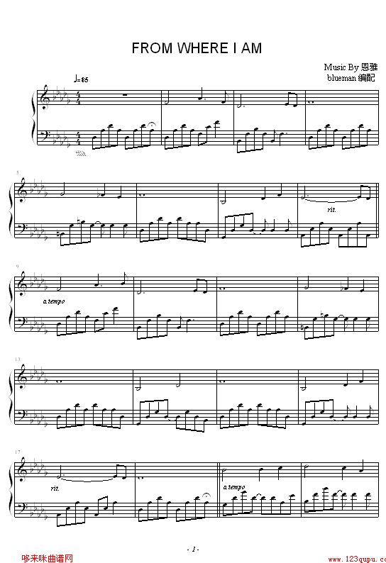 From Where I Am-恩雅免费钢琴谱_五线谱:未知 点击: 1000 图片可能经过缩放,手机长按或点开后长按保存,电脑鼠标右键保存.