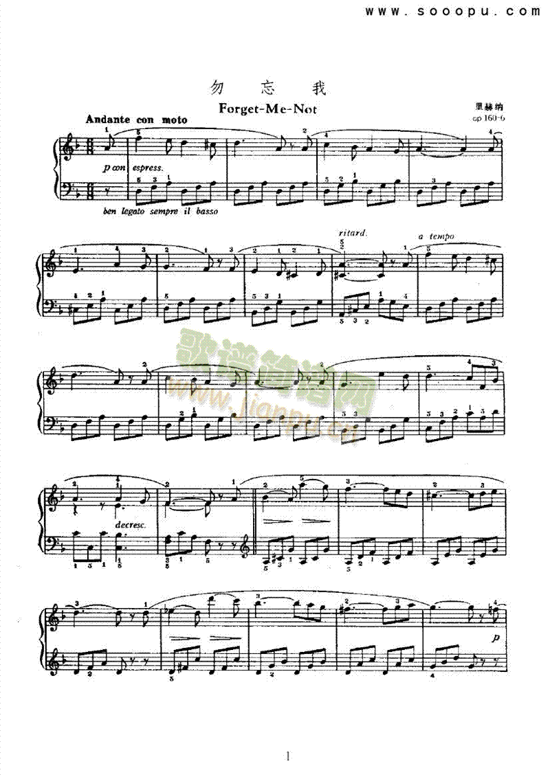勿忘我 键盘类 钢琴免费钢琴谱_五线谱:里赫纳 点击: 1000 图片可能经过缩放,手机长按或点开后长按保存,电脑鼠标右键保存.