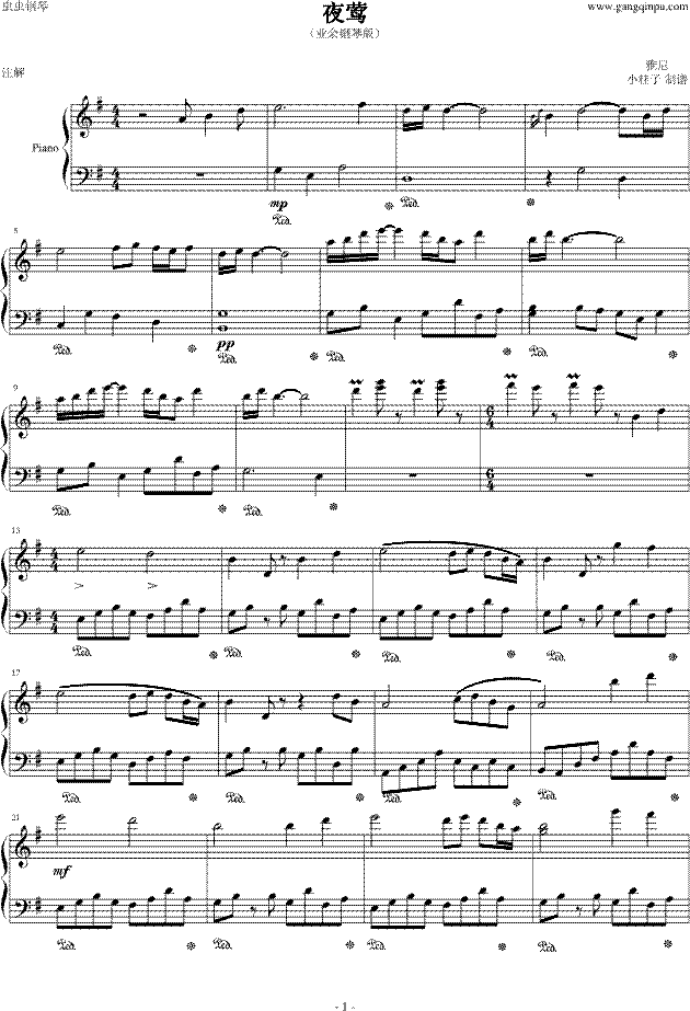 夜莺-钢琴谱(钢琴曲)-雅尼免费钢琴谱_五线谱: 点击: 1000 图片可能经过缩放,手机长按或点开后长按保存,电脑鼠标右键保存.