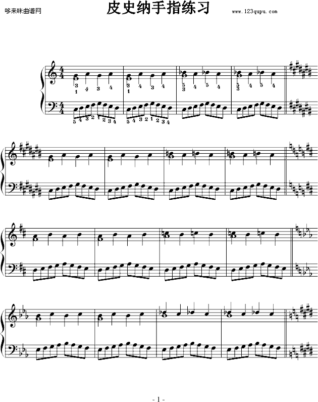 皮史纳手指练习-皮史纳免费钢琴谱_五线谱:未知 点击: 1000 图片可能经过缩放,手机长按或点开后长按保存,电脑鼠标右键保存.