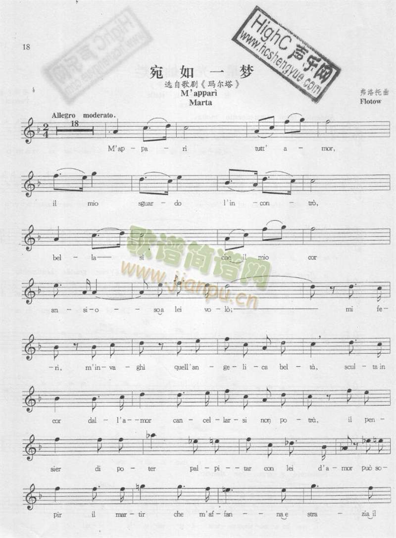 《宛如一梦》(玛尔塔)免费钢琴谱_五线谱: 点击: 1000 图片可能经过缩放,手机长按或点开后长按保存,电脑鼠标右键保存.