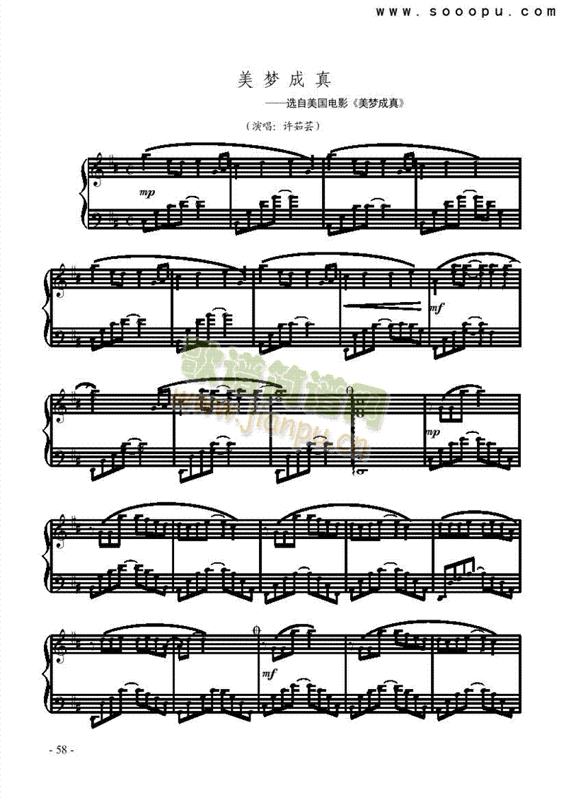 美梦成真 键盘类 钢琴免费钢琴谱_五线谱:许茹芸 点击: 1000 图片可能经过缩放,手机长按或点开后长按保存,电脑鼠标右键保存.