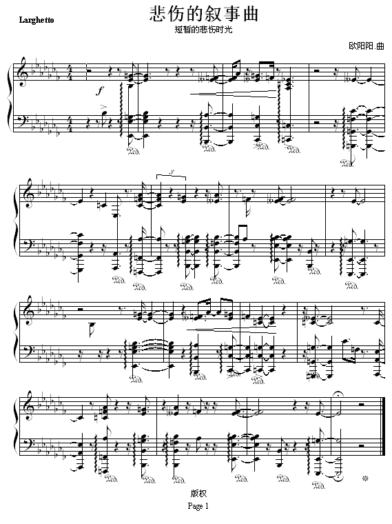 悲伤的叙事曲免费钢琴谱_五线谱:欧阳阳. 点击: 1000 图片可能经过缩放,手机长按或点开后长按保存,电脑鼠标右键保存.