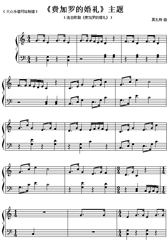莫扎特:《费加罗婚礼》主题免费钢琴谱_五线谱:未知 点击: 1000 图片可能经过缩放,手机长按或点开后长按保存,电脑鼠标右键保存.
