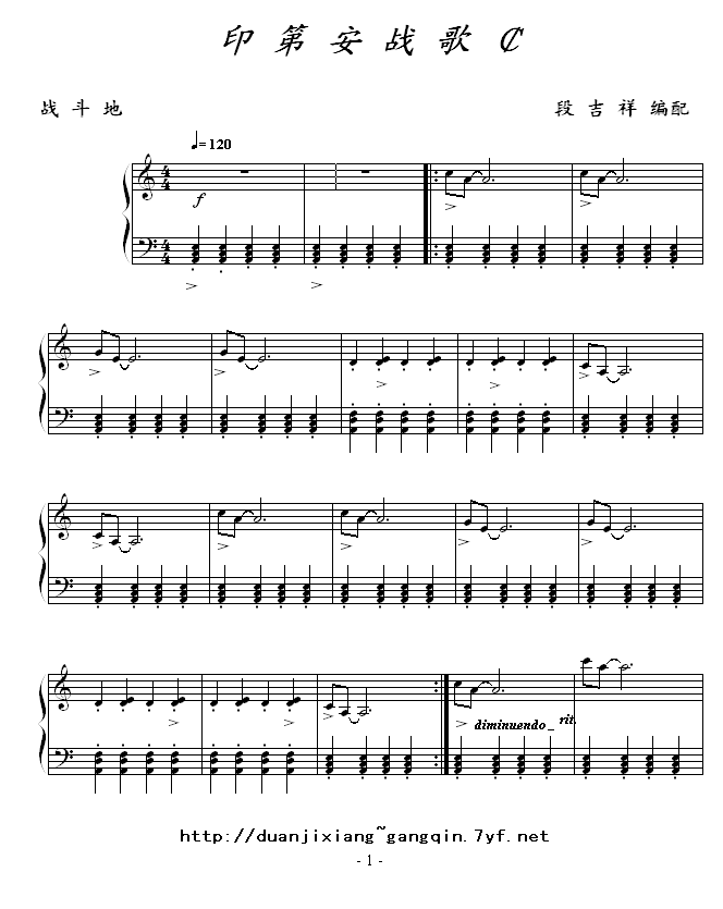 印第安战歌¢免费钢琴谱_五线谱:其他侠名 点击: 1000 图片可能经过缩放,手机长按或点开后长按保存,电脑鼠标右键保存.
