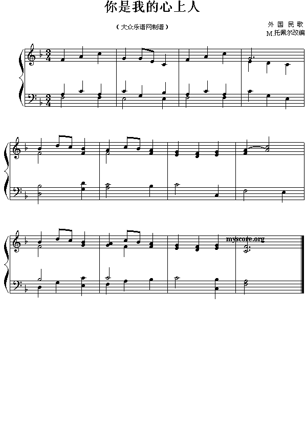 你是我的心上人(钢琴简易小曲)免费钢琴谱_五线谱: 点击: 1000 图片可能经过缩放,手机长按或点开后长按保存,电脑鼠标右键保存.