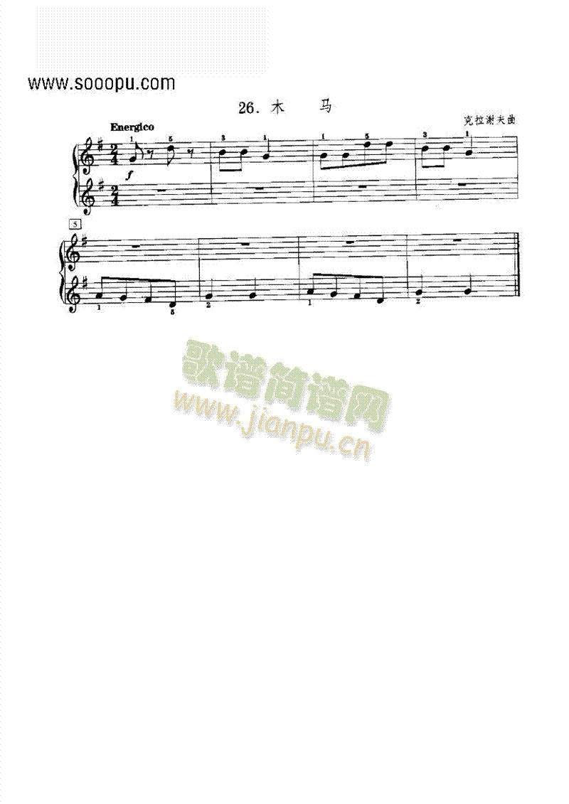 木马 键盘类 钢琴免费钢琴谱_五线谱:儿童钢琴 点击: 1000 图片可能经过缩放,手机长按或点开后长按保存,电脑鼠标右键保存.