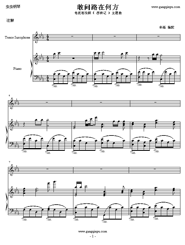 敢问路在何方-《西游记》主题曲免费钢琴谱_五线谱:影视 点击: 1000 图片可能经过缩放,手机长按或点开后长按保存,电脑鼠标右键保存.