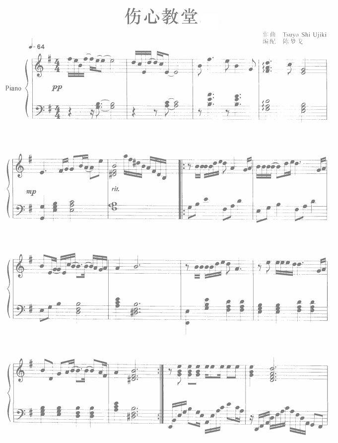 伤心教堂免费钢琴谱_五线谱:原唱梅艳芳 点击: 1000 图片可能经过缩放,手机长按或点开后长按保存,电脑鼠标右键保存.