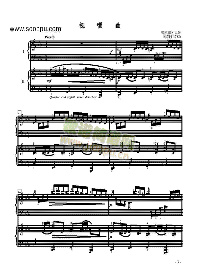 视唱曲—双钢琴 键盘类 钢琴免费钢琴谱_五线谱:[德]埃米纽·巴赫 点击: 1000 图片可能经过缩放,手机长按或点开后长按保存,电脑鼠标右键保存.