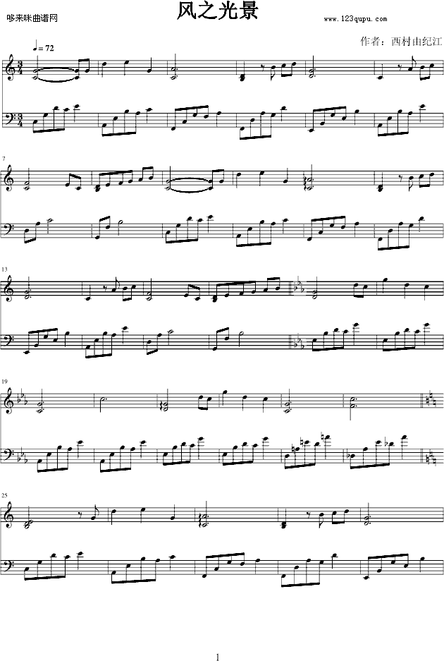 风之光景-西村由纪江免费钢琴谱_五线谱:未知 点击: 1000 图片可能经过缩放,手机长按或点开后长按保存,电脑鼠标右键保存.