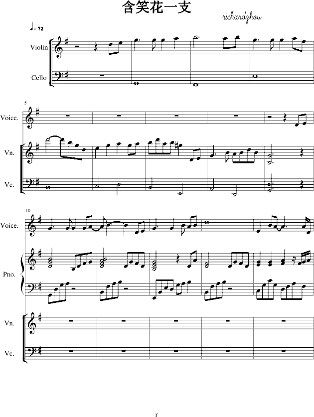 含笑花一支免费钢琴谱_五线谱/词曲:richardzhourichardzhou点击: 1000 图片可能经过缩放,手机长按或点开后长按保存,电脑鼠标右键保存.