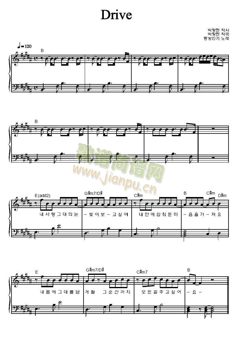 Drive免费钢琴谱_五线谱:东方神起 点击: 1000 图片可能经过缩放,手机长按或点开后长按保存,电脑鼠标右键保存.
