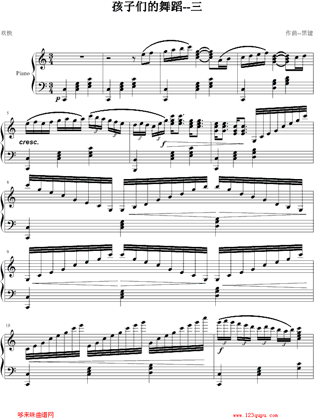 孩子们的舞蹈--三-黑键免费钢琴谱_五线谱:未知 点击: 1000 图片可能经过缩放,手机长按或点开后长按保存,电脑鼠标右键保存.