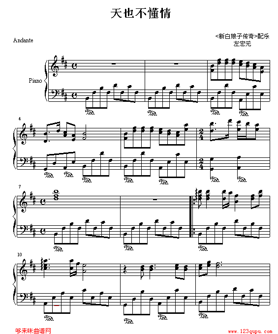 天也不懂情-新白娘子传奇免费钢琴谱_五线谱:未知 点击: 1000 图片可能经过缩放,手机长按或点开后长按保存,电脑鼠标右键保存.