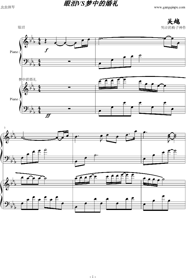 梦中的婚礼VS眼泪-改-钢琴谱(钢琴曲)-吴越免费钢琴谱_五线谱: 点击: 1000 图片可能经过缩放,手机长按或点开后长按保存,电脑鼠标右键保存.