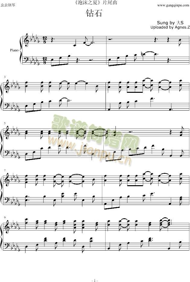 钻石免费钢琴谱_五线谱:大S 点击: 1000 图片可能经过缩放,手机长按或点开后长按保存,电脑鼠标右键保存.