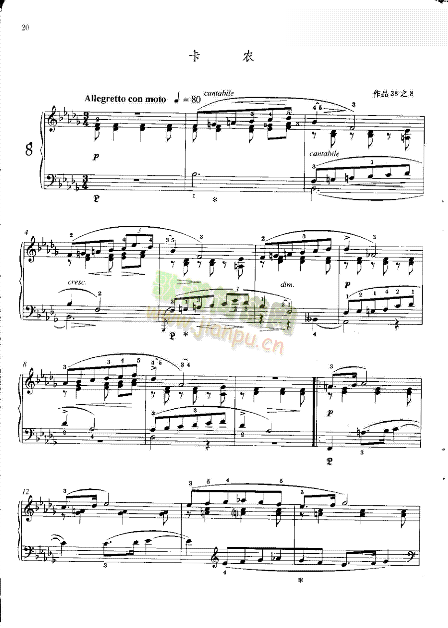 卡农—格里格(作品38之8). 键盘类 钢琴免费钢琴谱_五线谱:格里格 点击: 1000 图片可能经过缩放,手机长按或点开后长按保存,电脑鼠标右键保存.