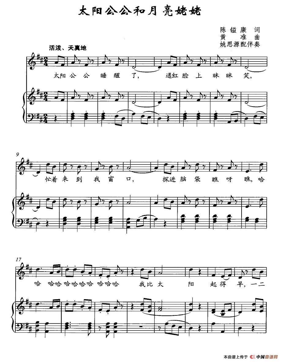 太阳公公和月亮姥姥免费钢琴谱_五线谱:作词:陈镒康作曲:黄准 点击: 1000 图片可能经过缩放,手机长按或点开后长按保存,电脑鼠标右键保存.