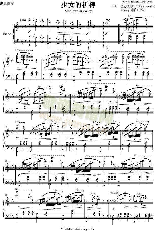少女的祈祷-带指法免费钢琴谱_五线谱:巴达尔切夫斯卡 点击: 1000 图片可能经过缩放,手机长按或点开后长按保存,电脑鼠标右键保存.
