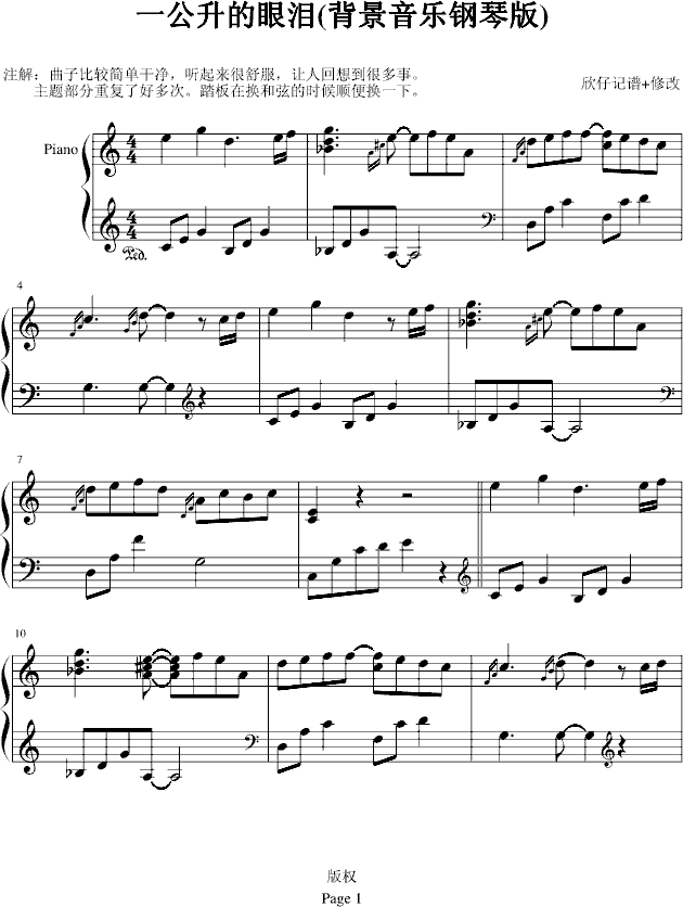 一公升的眼泪-(背景音乐完整版)免费钢琴谱_五线谱:影视 点击: 1000 图片可能经过缩放,手机长按或点开后长按保存,电脑鼠标右键保存.