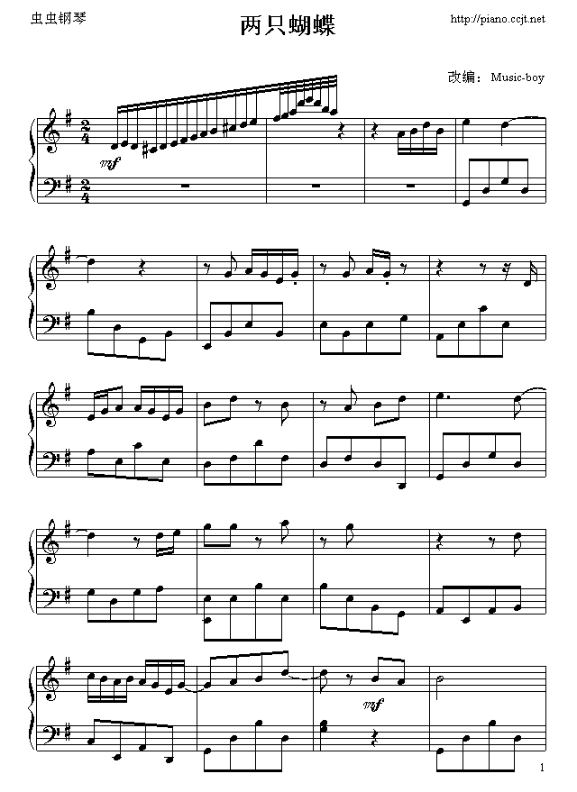 两只蝴蝶-Music-boy免费钢琴谱_五线谱:庞龙 点击: 1000 图片可能经过缩放,手机长按或点开后长按保存,电脑鼠标右键保存.