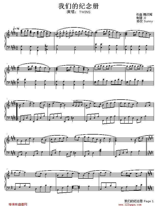 我们的纪念册-Twins免费钢琴谱_五线谱:未知 点击: 1000 图片可能经过缩放,手机长按或点开后长按保存,电脑鼠标右键保存.