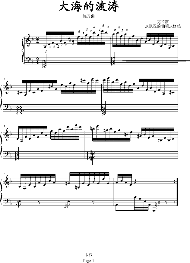 练习曲-大海的波涛免费钢琴谱_五线谱:克拉莫 点击: 1000 图片可能经过缩放,手机长按或点开后长按保存,电脑鼠标右键保存.