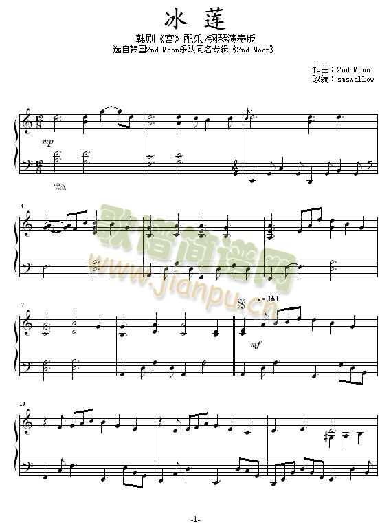 冰莲-韩剧《宫》配乐免费钢琴谱_五线谱: 点击: 1000 图片可能经过缩放,手机长按或点开后长按保存,电脑鼠标右键保存.