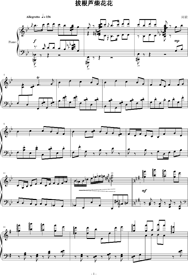 拔根芦柴花花-钢琴谱(钢琴曲)-阎毅免费钢琴谱_五线谱: 点击: 1000 图片可能经过缩放,手机长按或点开后长按保存,电脑鼠标右键保存.
