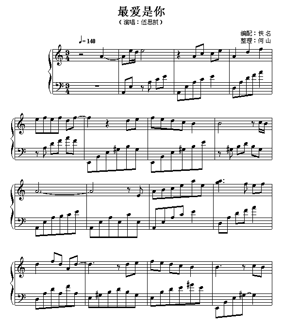 最爱是你-伍思凯免费钢琴谱_五线谱:未知 点击: 1000 图片可能经过缩放,手机长按或点开后长按保存,电脑鼠标右键保存.