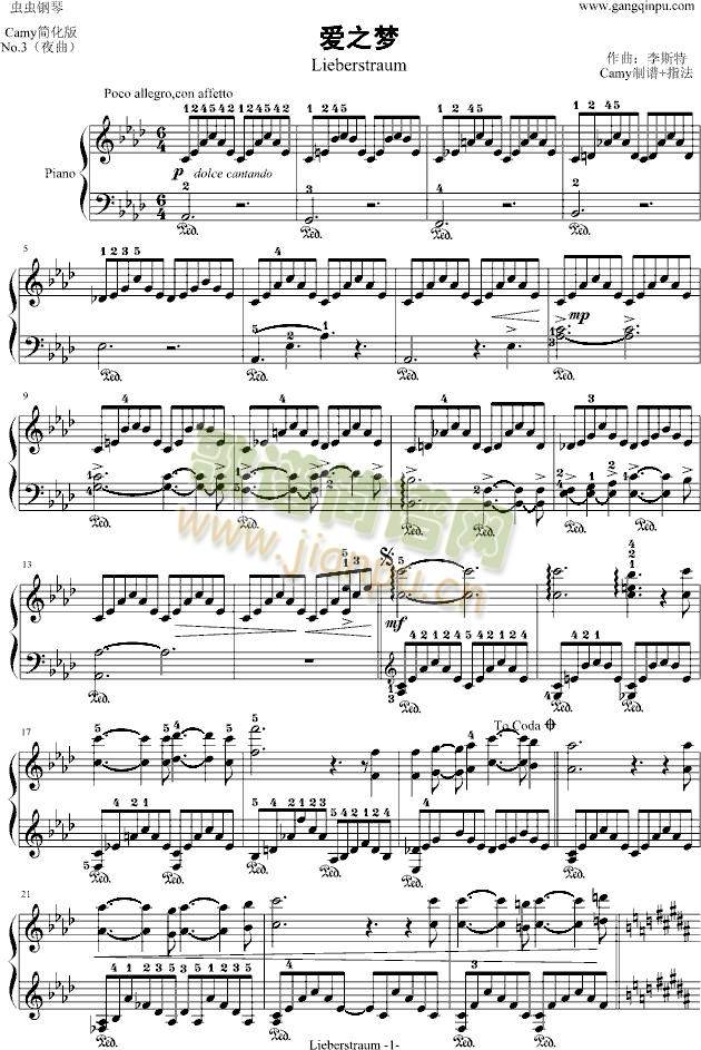 爱之梦(简化版)-带指法免费钢琴谱_五线谱:李斯特 点击: 1000 图片可能经过缩放,手机长按或点开后长按保存,电脑鼠标右键保存.